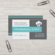 Grått, vitt, akvabinerat affärskort, med en vit kock, öga, med en vit kock - toque med en gaffel, sked och knivar på grått bakgrund och texten "Personal Chef" i ett akvblått band. Utformning av perfektens professionell för huvudkockar, personkockar, kulinarier, kock de cuisine, chef, kockchef.
