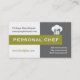 Grått som fångar upp öga, vita, oliv grönt affärskort med en vit kock på grått-bakgrunden och texten "Personal Chef" i ett oliv grönt band. professionell av perfekt för huvudkockar, personkockar, kock de cuisine.