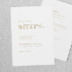 Denna minimalistiska guld moderna konsthändelse deka i ett enda bröllopsinbjudan till presenter både en elegant, svart tidskrift och en avslappnad, enkel design för en traditionell eller mer rustik giftermål firande. Den enkla, neutralt guld och vita layouten med unik, klassisk typografi hänvisar till minimal boho eller klassliknande återtro skapar den en perfekt för alla teman.