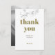 En gren av elfenbensvita orkidéer, hand plockade i svart grafitpenna, dekorerar denna distinkta, elegant, enkla, klassiska och moderna bröllop-tack-mall. Den har modern elegant-typografi i ett guld-hue (inte riktig folie) och en mall på baksidan för ett bröllop-bild i lycklig-paret. Luxuriös men enkel, klassisk men chic, modern men tidlös.