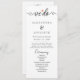 Modern Minimal Bröllopsprogram-ordning för händelser Detta är ett modernt bröllopsprogram med ett typsnitt för eleganten och en minimalistisk layout. Redigera all färg och allt teckensnitt och all bakgrund. // Om du vill ha matchande artiklar går du till "HARLOW"-samlingen i Nicole Zazzle-butiken med vänlig hjälp. * Om du gillar den här designen men inte ser den tillgänglig för något du är tittar för, kontakta mig när som helst