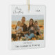 Glad helg! Skicka ditt varma önskemål till vänner och familj den här julsäsongen med en personlig fotojulprydnad. Den har ett minimalistiskt handskrivet skript och typewriter-typografi för vintage. Gör det själv genom att lägga till ett foto, namn, år och andra anpassningsbar. Denna minsta julprydnad finns i andra färg.