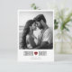 Markera datum för bröllop med det här minimalistkortet. Med en skarp vit bakgrund och modernt typsnitt har utformningen ett smaklöst rött hjärta mellan parets namn. Ett enkelt, snyggt sätt att upphetsningen hos ert kommande bröllop. Det här minimalistiska sparandet av datumkortet kan uppdateras med fotot så att du kan din glädje med en personlig beröring. Med en modern, ren utformning på framsidan visningar baksidan fotot under parets namn, åtskilt av ett charmigt rött hjärta. Ett vackert, minnesvärt sätt att tillkännage er bröllop-dejt.