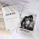 Markera datum för bröllop med det här minimalistkortet. Med en skarp vit bakgrund och modernt typsnitt har utformningen ett smaklöst rött hjärta mellan parets namn. Ett enkelt, snyggt sätt att upphetsningen hos ert kommande bröllop. Det här minimalistiska sparandet av datumkortet kan uppdateras med fotot så att du kan din glädje med en personlig beröring. Med en modern, ren utformning på framsidan visningar baksidan fotot under parets namn, åtskilt av ett charmigt rött hjärta. Ett vackert, minnesvärt sätt att tillkännage er bröllop-dejt.