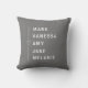 En minimalistisk kudde i ett vackert färskt grått färg med vit text, med upp till fem medlemmar i namn, med en linje och gräns med hjärta till lämnat. Om du vill ha mindre namn kan du redigera verktyg och ta bort namn i extra. Den här designen kan anpassas med din familjemedlem namn.