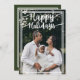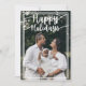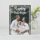 En julkortsmall med kursiv vit text och ett helt anpassat foto och årsslutsmeddelande, julkort för familj och vänner.