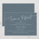 Att skjuta upp en stor händelse som bröllop kan vara stressande, men du kan fortfarande se snyggt med denna moderna och minimalistiska förändring av planmallkortet. Det står "kärlek är tålmodigt" i snyggtens skript längst upp med lite hjärta. Bakgrunden är skifferblått.