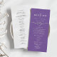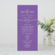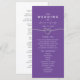 Leda dina gäster genom din ceremoni med detta eleganta minimalistiska lila bröllopsprogram. Designat med en rik violett bakgrund, romantisk silverrep hjärta och sofistikerad kalligrafiskrift, lägger detta stilrena program en polerad, modern touch till din speciella dag samtidigt som fokus hålls på din firande.