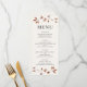 Denna moderna minimalistiska fallbröllopsmeny har högvattenfärgssprickor i höst löv överst och grund, med en ljusbeige bakgrund.