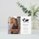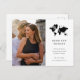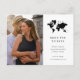 Den här eleganten, det moderna destinationsbröllopet, sparar datumkortet med en enkel svart och vit textdesign som exuderar minimalistiskt stil, med ditt favoritfoto. Utformningen har en svart illustrerad världskarta och ord "bok biljett".