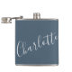 Minimalistisk script-typografi Namn Flaska i mörk dammig blå