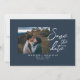 Minimalistiskt marint blåfärgat fotfoto Bröllop Spara Datumet