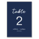 Minimalistiskt marint blåskript Bröllop Bordsnummer