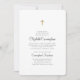 Består av kursivt manus och serif-typografi. Allt mot en bakgrund av vit bakgrund. En enkel faux guld kor sänker typografin subtilt. Detta är en klassisk, enkel och ren begravning eller en minnesinbjudan.