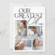 Den här charmerande julkortsdesignen har en minimalistisk estetik med en aning elegans. Framsidan visar ett vackert kollage av familjefotografier med deras nyfödda baby. Kortet tillkännager att deras "underbarare gåva" kommer 2024, skapar det som ett perfekt för att glädjen i deras nya tillskott med närstående i julhelgen. Den enkla men ändå elegant utformningen med en ren vit bakgrund och svart text skapar ett varmt och inbjudande känsel. Kortets baksida innehåller ett hjärtligt budskap som fångar magin i att välkomna deras första baby in i världen. Den övergripande utformningen är både hjärtfull och berömvärd, skapar det som ett val av perfekt för familjer som tittar sina dyrbara stunder och sprider glädje under julsäsongen.