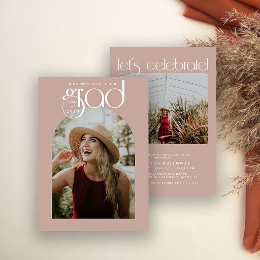 en modern, minimalistisk utformning med ett kalligrafiskt skript i guld och ett foto med guld mot ett djupt garnet-burgundi färg. Anpassa enkelt med valfri information. En underbar keepy för ditt stolta ögonblick.