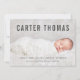 Fotokort för födelseannonsering i baby till ett överkomligt pris i anpassningsbar. Den här moderna minimalistiska designen ger dig baby namn och födelsestatus som är överlagrad på ditt nyfödda foto som blöder i fullt. Den omvända sidan har utrymme för ytterligare foton och text om det behövs. Använda designen verktyg för att redigera typsnitt och färg, lägga till fler foton och skapa ett unikt födelsemeddelande av typen baby för din son eller flicka i nyfödd bebis.