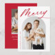 Minimalistiskt Merry Red Script 2-foto Julkort