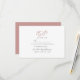 Denna chic och minimalistiska OSA kort har en ren vit bakgrund med moderna kalligrafaccenter i mjuk dammig ro och kol-grått. Med klart definierade alternativ för närvaro och måltider - inklusive vegetarian, vegan och glutenfri - är det perfekten som komplement till en modern eller romantisk bröllopssviten. Elegant och enkel att anpassa för ett pars firande.