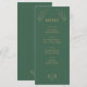 Öka din bröllopsmottagning med den här snyggten Minimalist Modern Elegant Classic Bröllop Menu. Med ett trendig grönt färg-schema och ett calligraphy-skriptteckensnitt för elegant lägger den här exquisite and formal-menyn till en något sofistikerad inställning för bord. Anpassa med egna menyalternativ och information, och ge ger dina gäster en skymt av vad som är till kom. Om du vill ha matchande objekt går du till Grönten Modern Minimalist Elegant bröllop-inbjudningar.