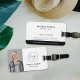 Elegantens resgodsbricka i svartvitt med plats för fotot och logotyp. Skapa märkesskyddade presenter för ditt riktiga företag i gods med hjälp av den här minimalistiska utformningen av fotobagagetaggen. Du kan lägga till logotyp och anpassningsbar för ditt företag, redigera färg och mycket mer för att skapa dina resgods-taggar för snyggten själv eller som en kampanjklientgåva. * DIYMyDesignStore är inte på något sätt associerat, sponsrat, anslutet eller påtecknat med några registrerade termer som det hänvisas till i den här mallen, inklusive de varumärkestermer REALTOR® eller REALTOR-ASSOCIATE® som tillhör respektive varumärkesinnehavare egendom. Platshållartexten är bara ett exempel, det är ert ansvar att kontrollera texten noggrant och ändra någon del av den till kostym efter behov och följa bestämmelserna.