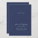 Minimalistiskt Modern Navy Blue Script Bröllop Spara Datumet