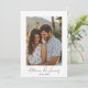 Elegant Photo Bröllop-meddelande firar kärlek i stil med det här minimalistiska bröllop-annonskortet som innehåller ditt favoritfoto på framsidan med handskrivna chic-skriptaccenter. Personlig för din Kärlek-artikel Lägg till datum för namn och bröllop längst fram och anpassa baksidan med ett hjärtligt budskap till familj och vänner. Den rena designen och tidlösa typsnitt gör detta till perfektens viktigaste nyheter. Modern minimalistisk Stil Designad med vit bakgrund, skripttypografi och utrymme för ett fullt-storlekt foto balanserar det här anslagskortet på ett vackert sätt enkelhet och sofistikering - perfekt för par som kärlek ett elegant, contemporary utseende.