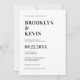 Modern, minimalistisk och enkel inbjudan, men ändå elegant bröllop. Perfekt för delikata inbjudningar till utformningen av bröllop för vilken tid som helst på året och vilken typ eller vilket tema som helst. Färg: Svart, vit QR CODE för OSA. Enkel redigerbar text, teckensnitt, färg och storlek. Utrymme för att lägga till bröllop webbplats och monogram på baksidan. Matchande mallobjekt hittades i samlingen BROOKLYN