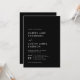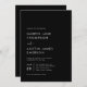 Den här minimalistiska moderna, enkla bröllopsinbjudan har snyggt och contemporary vit typografi på en svart bakgrund som är perfekt för det moderna paret.
