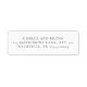 Minimalistiska moderna bröllops returadressetiketter med ren typografi, tidlösa serif-teckensnitt och en elegant layout. Denna design förkroppsligar “tyst lyx” — där enkelhet, mellanrum och raffinerade detaljer skapar en sofistikerad look som aldrig blir omodern. Perfekt för par som planerar ett modernt, klassiskt eller redaktionellt bröllop.