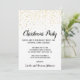 Denna minimalistiska, moderna kongolechristmas-partiinbjudan är perfekt för en klassad jul eller julhelg firande. Utformningen har festive guld konetti med elegant mörk grått calligraphy på vit bakgrund.