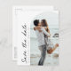 Med det här enkla och moderna anpassadet sparar gästerna från inbjudan till bröllop datuminbjudan. Foto på kortet kan ändras till eget. Det här sparar datuminbjudan är perfekt för vilken säsong som helst.