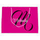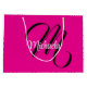 Minimalistiskt, modernt monogram, inledande svartvit namn. Anpassningsbart eget namn med en kursiv början bakom på ett shock rosa färg.