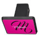Minimalistiskt, modernt monogram, inledande svartvit namn. Anpassningsbart eget namn med en kursiv början bakom på ett shock rosa färg.
