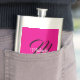 Minimalistiskt, modernt monogram, inledande svartvit namn. Anpassningsbart eget namn med en kursiv början bakom på ett shock rosa färg.