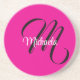 Minimalistiskt, modernt monogram, inledande svartvit namn. Anpassningsbart eget namn med en kursiv början bakom på ett shock rosa färg.