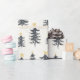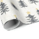 Den här presentfigurationen har en minimal, primitiv stil-design med enkelt kol-grått och svart målat, ett (tjockt) penseldrag julafton träd med gyllene stjärnor på topp och gräddvit abstrakt snö, allt på en ecru-/elfenbensbakgrund.