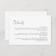 Öka bröllop med vårt moderna minimalistiska Vågrät-hölje, som är noggrant utformat för att visa elegans och charm. Önska dina gäster med dess eleganta utformning, med contemporary typsnitt och en ren layout på en pristinvit bakgrund. Blanda sömlöst stil och funktioner eftersom du ger viktiga detaljer till dina omhuldade gäster. Gör ett påstående som talar mycket om din förfinade smak och om detaljer. Öka ditt bröllop-skrivbordsspel med det här enkla men sofistikerade tillägget. Beställ nu och ange tonen för ett firande som de aldrig kommer att glömma.