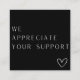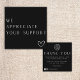 De här korten har en elegant svartvit design och ger plats för ditt varumärke och din namnteckning för logotyp, vilket skapar ett sammanhängande och modernt utseende. Perfekt för små företag, de ger dig möjlighet att uttrycka tacksamhet för kundsupport, inkludera ett rabattmeddelande eller inbjudan-kunder att ansluta på social-media. Dessa kort gör det enkelt att förvandla ett enkelt tack till en meningsfull gest, som bygger lojalitet och tillit med varje order. Skapa en modern kundupplevelse - anpassa din dator i dag!