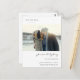 Minimalistiskt vykort med Bröllop spara datum i skript med foto i vit bakgrund