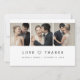 Uttryck din tacksamhet i stil med den här Anpassningsbarna: Minimal enkel tack för Kärlek och tack, tack för Bröllop tack. Det här kortet har en ren och modern utformning och rymmer utrymme för bröllop-foton som omhuldas av många och ett hjärtligt "Kärlek och tack"-meddelande med ett känsligt hjärtmotiv. Perfekt för par som föredrar ett minimalistiskt estetiskt kort gör att du kan visa dina favoritstunder samtidigt som du uppriktigt uppskattar det. Helt anpassade, du kan lägga till ditt namn, ditt personliga meddelande och bröllop-information för att skapa en vacker keepy för dina kära. Idealisk för att du delar med dig av kärlek och tack till vänner och familj!
