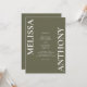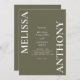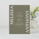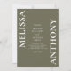 Modern minimalistisk Oliv grönt bröllopsinbjudan. Har fet typografi och minimal grafisk design. Anpassa texten med all information om din speciella dag.