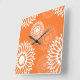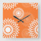 Minimalistiskt Orange Mandala-geometriskt Blommöns Fyrkantig Klocka