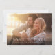 Anteckna att du i stil i oförglömliga dagar i bröllop sparar datumkorten med den här eleganten och det moderna fotot som innehåller ett vågrät eller ett landskapsinriktat foto i fullt med "spara datumet" överlagt med vita bokstäver längs grund. Din namn, bröllop-datum och bröllop-plats visas under modern text. Anpassa baksidan med ytterligare information, t.ex. webbplatsen bröllop.