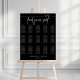 Välkomna gästerna i stil med detta elegant poster minimalisternas svarta sätesdiagram för bröllop. Med en elegant svart bakgrund, ett skarpt, vitt, modernt skript och en tydlig bord-layout kombineras sofistikering och praktisk användning. Perfekt för svartvita, moderna eller monokroma bröllop-teman. Anpassa enkelt med gästgästen namn och bordsnummer för att skapa en personlig, samordnad visning för mottagning. Koppla ihop den med bröllop-papper, bordsnummer och placera kort för ett sammanhängande utseende. Finns i många-storlekar för att passa din plats.