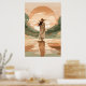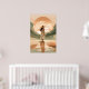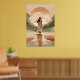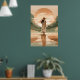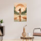 Ge lugn och elegans till ditt utrymme med den här minimalistiska solnedgången. Med en kvinna i en stor brim som går längs ett reflekterande väg med varma örhänta toner blandar detta konstverk ihop det moderna stil med naturskönhet. Perfekt för contemporary hem, boho insida, och alla som kärlek serene och snyggt wall décor.