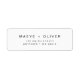 Ett returadressmärke som har en klassisk svart-vit färgpalett och en modern typsnitt. Denna adressdekalj är det perfekta sättet att avsluta din brevpapper för din moderna babyfest, bröllopsfest, vigsel eller speciella tillställning. Kombinera med något i EVIE-kollektionen för en sammanhängande look.