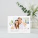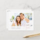 Den här minimalistspara datumet för vykortet innehåller ett stort vågrät-foto och avslappnad ro guld-skript. På framsidan av vykortet står det i den moderna kalligrafin "Spara datum" i nedre hörnet av högerna. Det rosa guld-tecknet täcker delvis över ett foto med liggande orientering. Lägg till namn, bröllop-datum och bröllop för att slutföra anpassningen på framsidan. På baksidan av vykortet finns en mall där du kan lägga till ytterligare information, till exempel på webbplatsen bröllop.