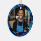 Minimalistiskt röktmolnblått foto julgransprydnad keramik