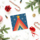 Minimalistiskt rött och blått Retro Groovy Julgran Julkort